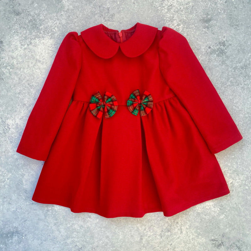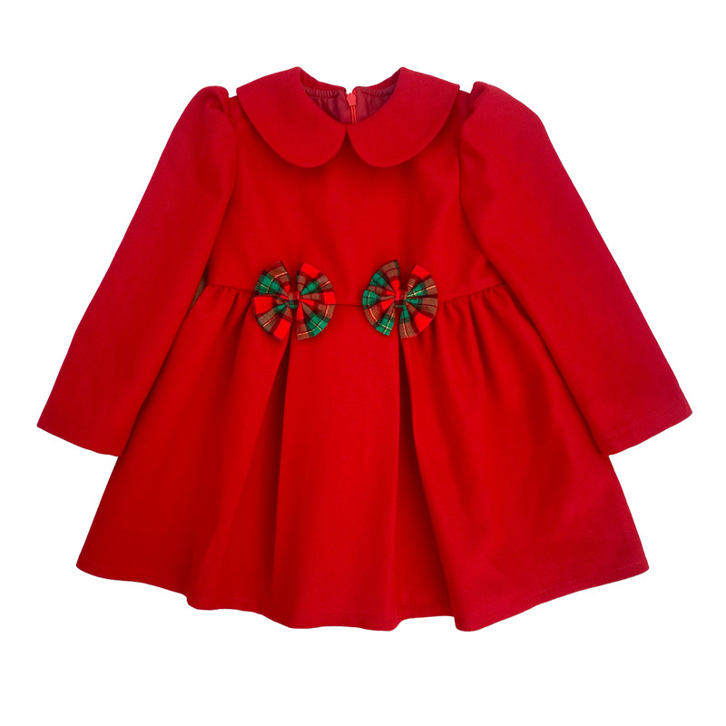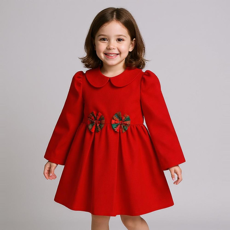پیراهن نارگل، مناسب مراسم شب یلدا و مهمانیهای کودک شماست. این پیراهن دوخت مزون ژاکید است. جنس پارچهی پیراهن، پشمی ممتاز سپاهان است. پیراهن آسترکشی شده و پشت آن با زیپ بسته میشود. یقهی پیراهن مدل ب ب است. بالای آستین با چین پفی تزیین شده و تنخور بسیار زیبایی را به آن بخشیده است. روی لباس با دو پاپیون زیبا تزیین شده است. قد پیراهن تا بالای زانو است. روی دامن پیراهن با دو پیلی زیبا تزیین شده است.