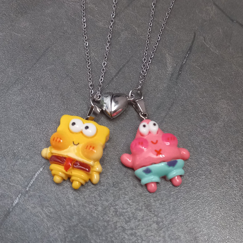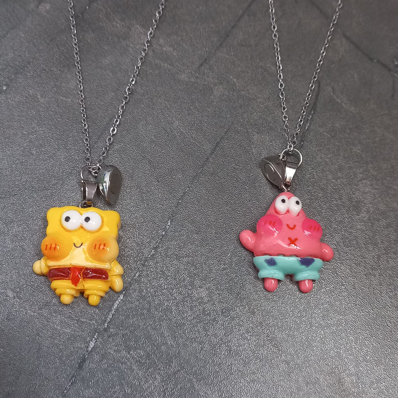 این محصول دارای دو عدد پلاک شامل پاتریک و باب اسفنجی به اندازه 2.5 سانتی متر با جنس پلاستیکی و دوعدد زنجیر رنگ ثابت با بافت ریز و طول 48 سانتی متر و یک قلب مگنتی می باشد.