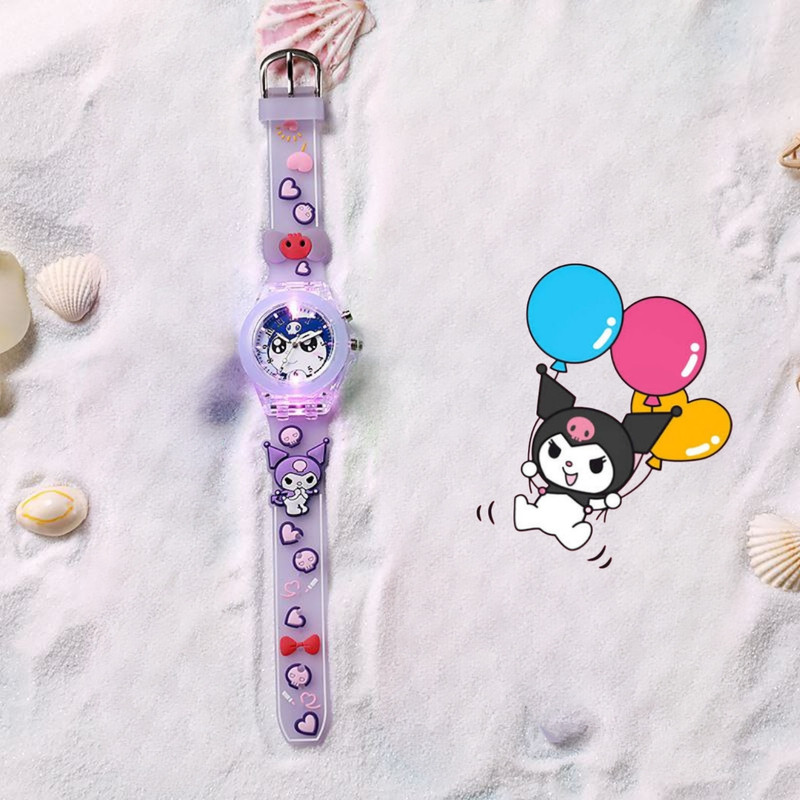 ساعت مچی عقربه‌ای کوارتز بچگانه مدل بند سیلیکونی چراغدار طرح کرومی