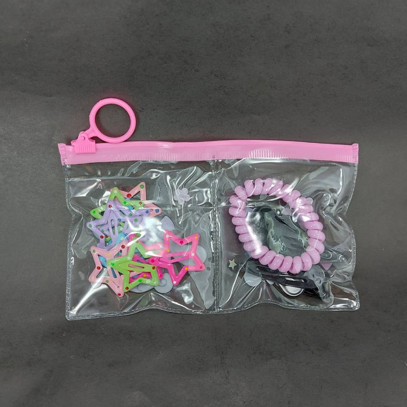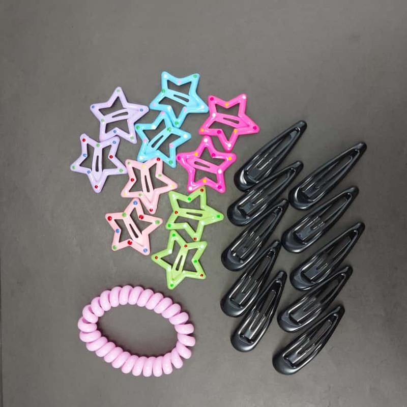 این ست اکسسوری مو ترکیبی از ظرافت و جذابیت است. در این پک ۱۰ عدد گیره موی تقتقی مشکی لاکی به طول ۵ سانتیمتر، ۱۰ عدد گیره موی ستارهای رنگی خالدار با قطر ۳ سانتیمتر و یک عدد کش موی فنری با قطر ۵ سانتیمتر قرار دارد. طراحی براق و جلوه فلزی لاکی گیرهها، همراه با رنگهای شاد و فانتزی، جلوهای خاص به موها میبخشد. این ست با بستهبندی شفاف زیپدار عرضه میشود و مناسب استفاده روزمره، استایلهای دخترانه و هدیه دادن است. کیفیت بالا، رنگبندی جذاب و کاربرد آسان، این ست را به انتخابی دلنشین برای هر سلیقهای تبدیل کرده است.