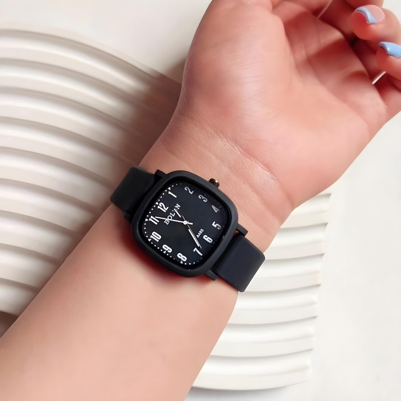 دستهبندی: ساعت عقربه ای دخترانه و پسرانهاستایل کاربری: روزمره , لوکس , فشن , رسمی , کلاسیکجنس بدنه: فلزفرم صفحه: چهارگوشجنس شیشه: معدنیجنس بند : TPUقابلیتهای تخصصی ساعت : بدون ویژگی تخصصیرنگ بند : مشکینوع قفل بند : سگکی سادهمیزان مقاومت : 1قطر صفحه ساعت : 30عرض بند : 10 میلیمترمنبع انرژی : باتریمیزان مقاومت در برابر فشار آب : بدون امکان مقاومت در برابر آبسایر توضیحات : به همراه جعبه مخصوص فروشگاه با نشان آونگنوع موتور ساعت : کوارتزنمایش بیشتر