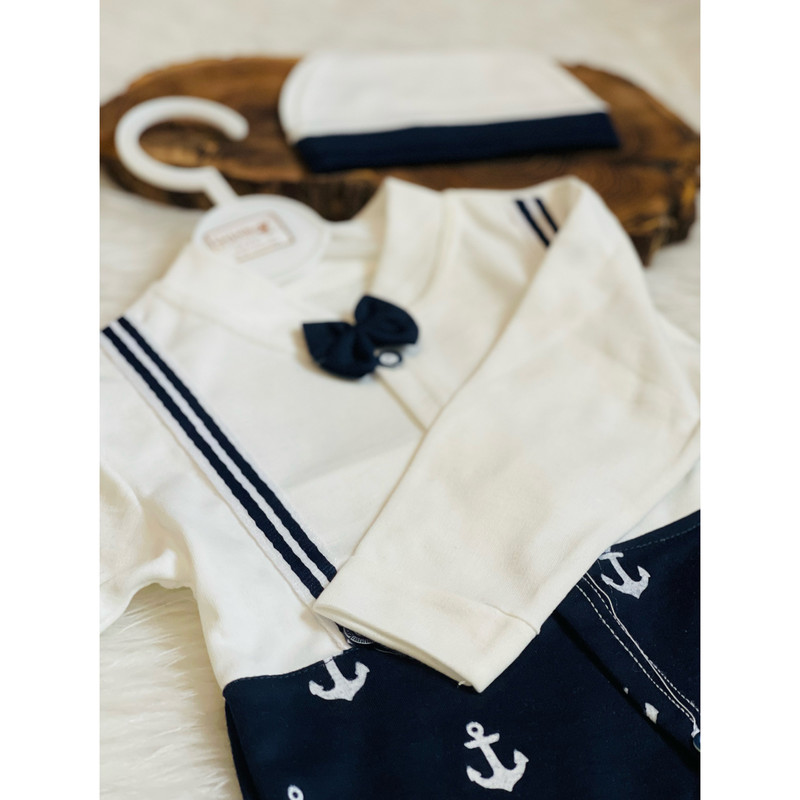 ست سرهمی و کلاه نوزادی مدل لنگر کد G4301