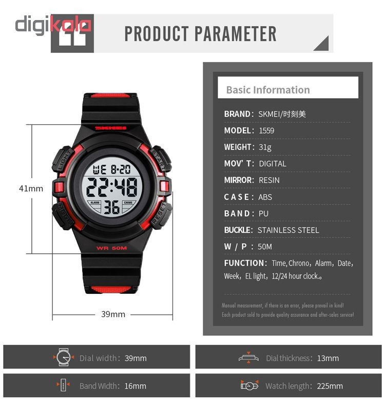 دستهبندی: ساعت دیجیتال دخترانه و پسرانهفرم صفحه: گردجنس شیشه: رزینجنس بدنه: پلاستیکنوع قفل بند: سگکی سادهمنبع انرژی : باتریجنس بند : پلاستیکرنگ بند : مشکی و قرمزابعاد بدنه : 13x39x39 میلیمترقطر صفحه ساعت : 39عرض قاب : 39 میلیمترعرض بند : 16 میلیمترضخامت بدنه : 13 میلیمتروزن : 31 گرمقابلیتهای تخصصی ساعت : نور پسزمینهاستایل کاربری : لوکس , روزمرهنمایش بیشتر