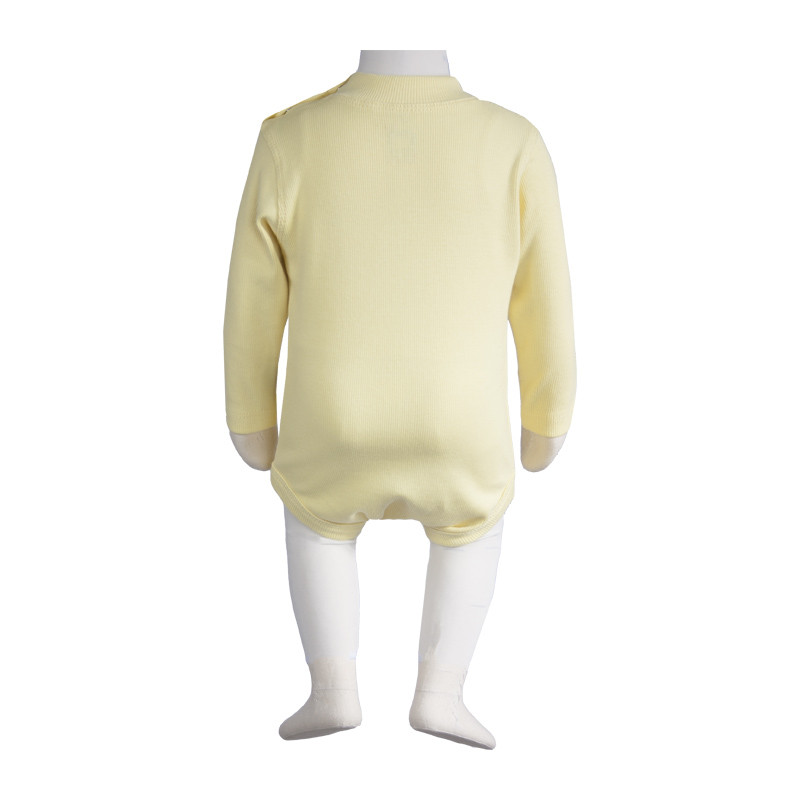 در قسمت پایین کار، بین پاها دکمه های فشاری به عنوان بست برای ثبات بیشتر لباس در تن تعبیه شده که تعویض پوشک نوزاد را راحتتر میکند. دکمه هاي فلزي بکار رفته از نوع ضد حساسيت مي باشند. لباسهای زیردکمهدار به دلیل اینکه پهلوهای نوزاد را به خوبی میپوشانند، این لباس در برابر شستوشو مقاوم بوده و ضدحساسیت است. با توجه به راهنمای انتخاب سایز که در قسمت چارت ابعاد آمده و سن نوزاد خود، میتوانید انتخاب درستی برای سایز لباس او داشته باشید.