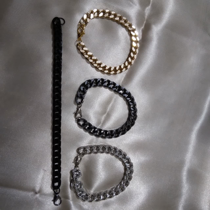 دستبند زنجیری جنس آلومینیومی دارای قفل مناسب برای دخترها و پسره و حتی بانوان و آقایان میباشد. جنس آن فلز مصنوعی بوده و طرح زنجیر فلزی میباشد. رنگ بندی آن ذغالی و نقره ای و طلایی و مشکی میباشد و کاری شیک و جدیداست.