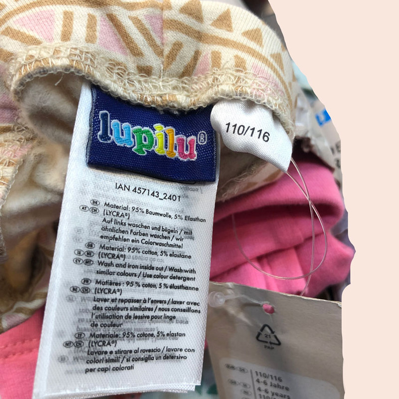 مجموعه ی 2 عدد ی شلوار داخل کرک جذب یا همان لگینگ دخترانه می باشد. این کالا از برند لوپیلو میباشد و دارای استاندارد های روز اروپا میباشد. لذا ضد حساسیت بوده و کودک راحتی کامل دارد. این کالا 95 % پنبه و 5%الاستان دارد. سایز 6-4 سال مناسب قد 110/116 سانتیمتر میباشد.دارای استاندارد OEKO-TEX میباشد. از 95% پنبه و 5% الاستان تشکیل شده است.با دمای 30 درجه شسته شود و قبل از اتو کشی لباس را پشت و رو نمایید.با البسه ی هم رنگ شسته شود و از مواد شوینده ی البسه ی رنگی استفاده شود.