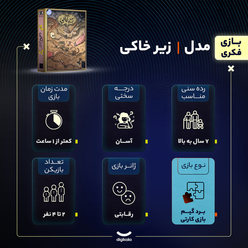 بازی کارتی زیرخاکی یک بازی رومیزی سریع و سرگرمکننده است که در آن بازیکنان در تلاش برای کسب بیشترین اشیای عتیقه، شانس خود را تا مرز شجاعتشان پیش میبرند!