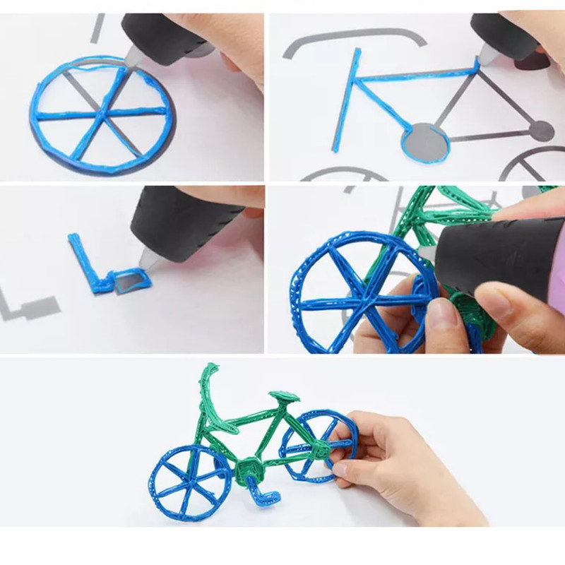 اقلام همراه: قلم سه بعدی دارای یک قلم از طریق یو اس بی به برق وصل میشود و یک پایه و مقداری مواد سه بعدی در چند رنگ متنوع میباشد که میتوان بر روی کاغذ یا مقوا یا جسم سخت طراحی یا نقاشی کرد و مناسب برای کودکان و نوجوانان میباشد