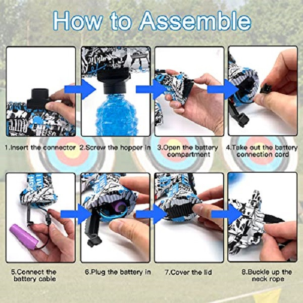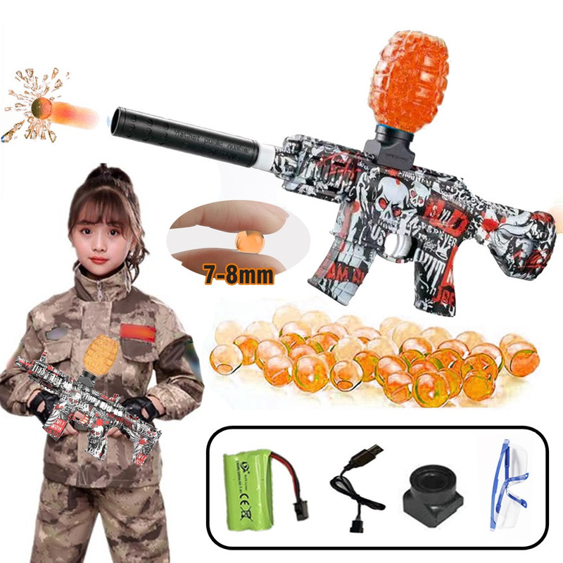 تفنگ مهمات ژله ای که با باتری قابل شارژ کار می کند. تا 200 گلوله را در یک زمان با برد بیشتر از 15 متر بارگیری می کند. از مهمات ژله ای 8 میلی متری A-001 استفاده می کند. مهمات ژله ای لک نمی کند و بعد از شلیک تبخیر می شود.شامل تفنگ، خشاب قابل جابجایی ، باتری قابل شارژ، شارژر USB، ظرف با مهمات 300 عددی ساشه 2000 گلوله c/u دارای مهمات برای هیدراته کردن، بند تفنگ و عینک ایمنی. بسیار مهیج، حتی برای افردا بزرگسال.