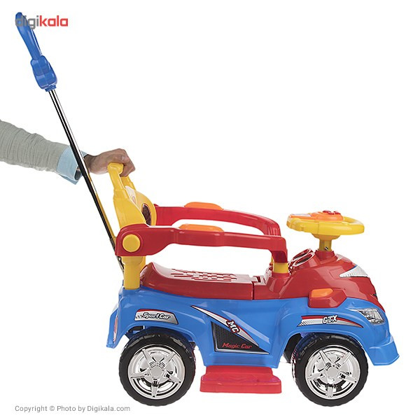 ماشین بازی «بیبی لند» مدل «Magic Car» با طول 72 سانتیمتر از پلاستیک مقاوم ساخته شده است. این جنس، حداکثر 20 کیلوگرم وزن را تحمل میکند و با وجود این ظرفیت، برای کودکان 2 تا 5 سال بسیار مناسب خواهد بود. وجود یک صفحهی موزیکال روی فرمان از دیگر ویژگیهای این ماشین سواری بوده که برای کودکان بسیار جذاب است. کودکان شیفتهی ماشینبازی هستند. اگر برای سرگرمی آنها از یک ماشین بازی متناسب با دنیای کودکانهشان استفاده شود، ساعتها گرم بازی میشوند. مدل «Magic Car» یکی از ایدئالهای کودک بهعنوان یک ماشین بازی است. این مدل با فرمانی شبیه یک ماشین حقیقی، این حسوحال را در کودک ایجاد میکند که در حال سواری با یک ماشین واقعی است. ماشین بازی Magic Car در یک بستهبندی به ابعاد 39/5×46×74 سانتیمتر عرضه شده است. این ماشین بازی، چهار چرخ پلاستیکی دارد. برای ایجاد حس سواریگرفتن از ماشین واقعی، هدایت آن با یک فرمان انجام میشود. این شبیهسازی، ارتباط کودک با ماشین را حین بازی بیشتر جلوه میدهد. روی فرمان، یک صفحهی موزیکال با قابلیت پخش صدای بوق و چهار دکمه جهت پخش ملودی کودکانه وجود دارد. برای کنترل ماشین بازی توسط والدین از اهرم هدایت فرمان استفاده شده و میتوان بر سرعت و جهت حرکت کنترل داشت؛ همچنین صندلی دارای محافظ بوده و برای خردسالان مناسب است. باید در سطحهای ناهموار، کودک را بهآرامی کنترل کنید و حرکت دهید؛ چون به دلیل نداشتن سیستم کمکفنر، ضربات ناشی از سطوح ناهموار به کودک وارد میشود. ناگفته نماند این ماشین فاقد سایبان است؛ اما زیر صندلی یک صندوق به ابعاد 10 × 18 × 25 سانتیمتر وجود دارد. چرخهای پهن و پلاستیکی ماشین سبب میشود در سطوح نرم هم حرکت کند و قرارداشتن مرکز ثقل روی چرخهای عقب باعث میشود هدایت و کنترل ماشین توسط چرخهای جلو راحتتر انجام شود. کودکان همواره به دنبال الگو قراردادن بزرگترهای خود هستند و ماشینبازی یک الگوبرداری از دنیای بزرگترهاست که همیشه برایشان خوشایند بوده است.