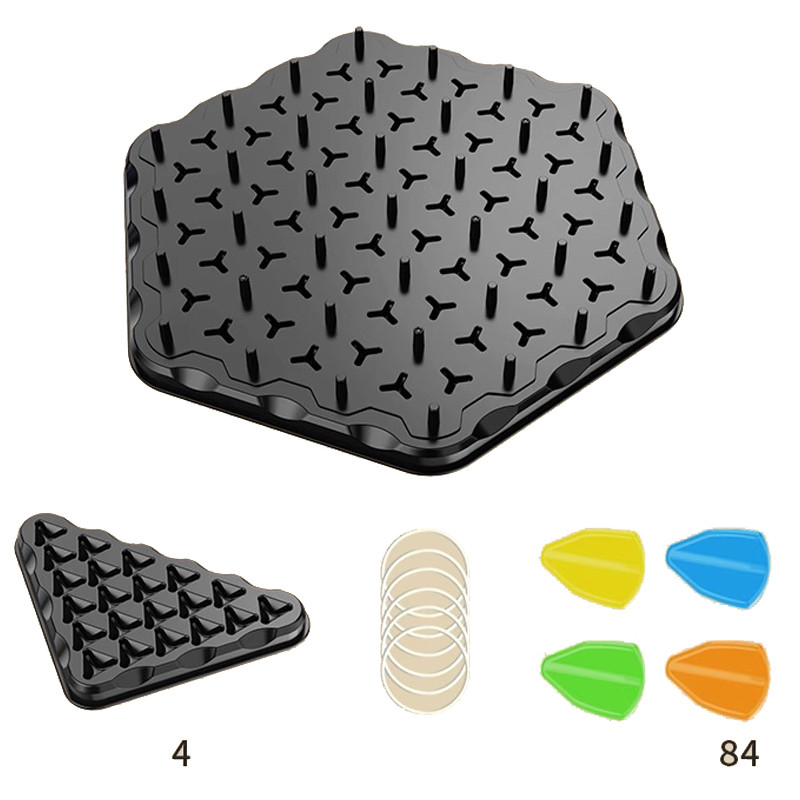 بازيكنان با استفاده از قطعات مثلثى رنكَى روى يك صفحه شش ضلعى رقابت مى كنند. اين بازى تركيبى از استراتزى، مهارت و تعامل اجتماعى است و به تقويت تمركز، هما هنكى دست وجشم وحل مسئله كمك مى كند.