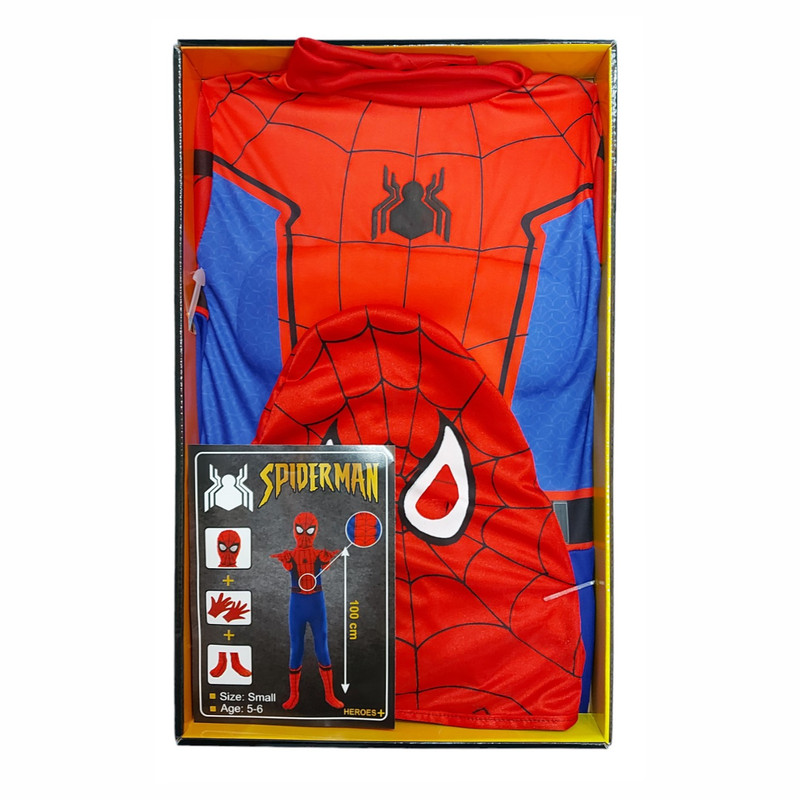 این ست، مجموعه لباس مرد عنکبوتی (اسپایدرمن) مناسب کودکان است. در این ست ایفای نقش یک لباس سرهمی اسپایدرمن، یک ماسک پارچه ای به صورت کلاه، یک جفت دستکش و یک جفت جوراب وجود دارد.