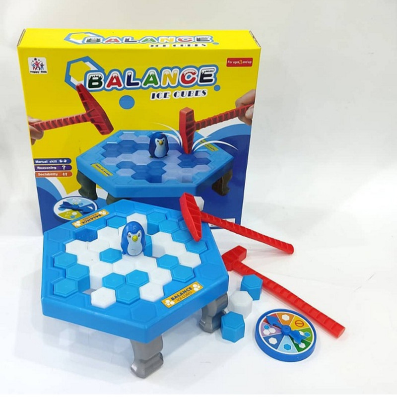بازی پینگو بالانس یک بازی هیجان انگیز دو نفره و مناسب برای کودکان بالای 3 سال است. این بازی شامل 40 قطعه در دو رنگ آبی و سفید، یک عقربه گردان، یک صفحه بازی، چهار پایه، دو چکش پلاستیکی و یک پنگوئن کوچک است. برای شروع بازی لازم است قطعات آبی و سفید درون صفحه بازی قرار گیرند و پایه ها به آن وصل شوند، سپس پنگوئن کوچک در وسط صفحه قرار گیرد. بازیکن ها باید به نوبت عقربه گردان را با انگشت بچرخانند. اگر نوک عقربه بر روی قطعه آبی بیفتد بازیکن باید در صفحه بازی یک قطعه آبی را با چکش بیندازد، همچنین اگر نوک عقربه بر روی سفید بیفتد باید یک قطعه سفید را با چکش بیندازد، در صورتی هم که نوک عقربه بر روی علامت قرمز بیفتد بازیکن یک نوبت نباید بازی کند و در نهایت اگر نوک عقربه بر روی دو قطعه بایستد بازیکن باید از هر رنگ دو قطعه را با چکش بیندازد. بازی به همین روند ادامه پیدا می کند تا زمانی که یکی از دو بازیکن پنگوئن کوچک را بیندازد.