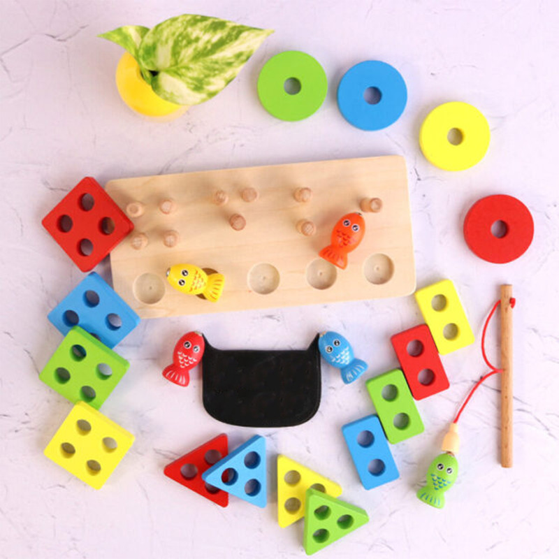 برای تقویت مهارت دست کودکان بالای سه سال یکی از بهترین راه ها استفاده از قطعات چوبی و جاگذاری در ستون هاست. این روش آموزشی را ماریا مونته سوری که پیشگام آموزش به کودکان از طریق بازی بود ابداع کرد. بر طبق این بازی کودکان تشویق می شوند که با استفاده از کنترل کردن قطعات با انگشتان دست آن ها را در سر جای خود روی ستون مورد نظرشان قرار دهند. بازی پایه اشکال چوبی و ماهیگیری آهنربایی یک پایه اشکال بسیار جذاب دو منظوره است که هم می تواند جاگذاری قطعات را به کودکان بیاموزد و هم کودک با استفاده از قلاب ماهیگیری اش ماهی های زیبا صید می کند.
