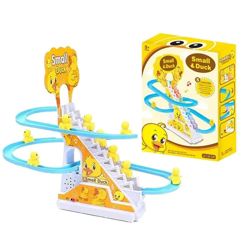 اسباب بازی موزیکال مدل جوجه اردک این کالا موزیکال است که با انداختن دو تا باتری قلمی شروع به موزیک پخش کردن میکند این کالا سه عدد جوجه اردک مغناطیسی دارد که از پله ها بالا میروند سپس از سرسره می آیند پایین و دوباره و کنار پله ها روشن میشود موقع موزیک پخش شدن برای همین کودک خیلی لذت میبرد