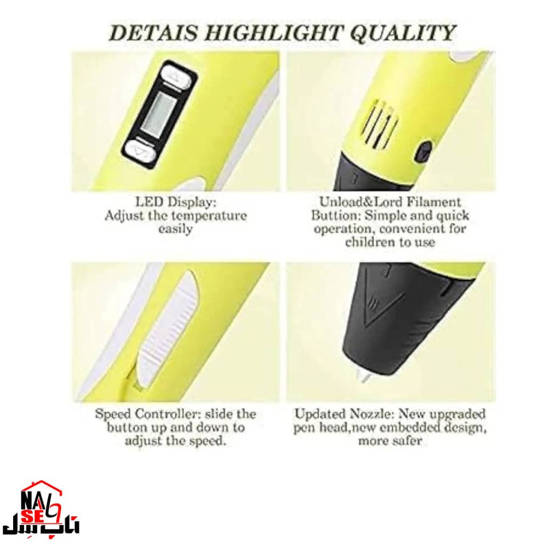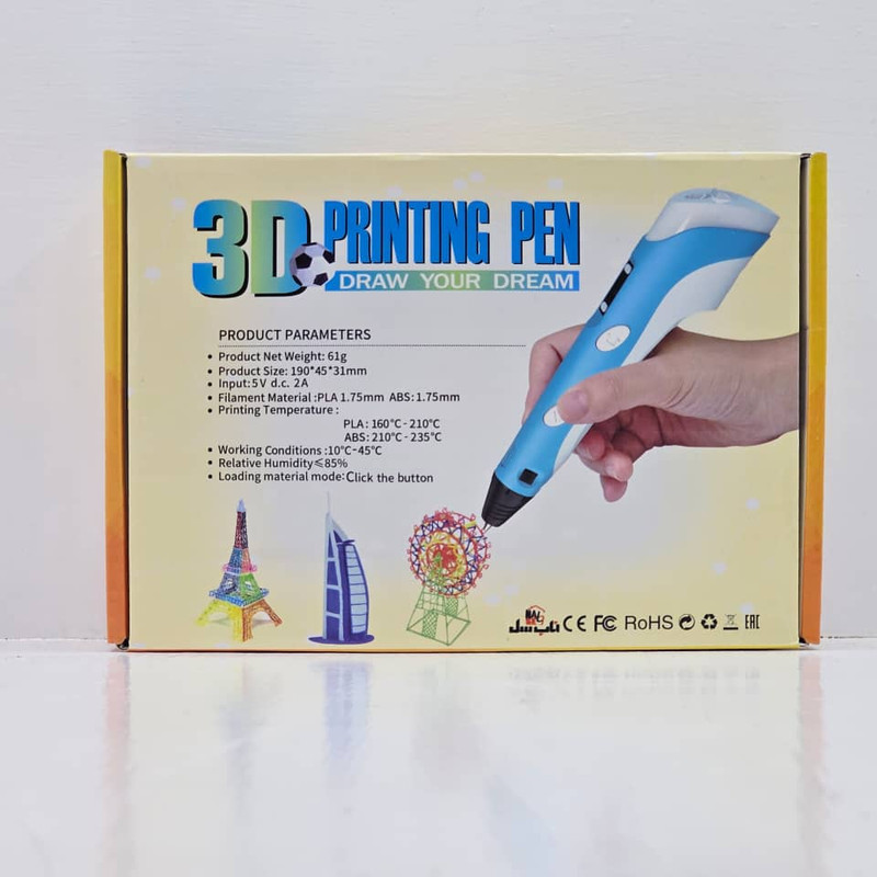 قلم طراحی سه بعدی ناب سل به همراه بسته طراحی فیلامنت اضافه ، ابزاری جدید است که رشته های پلاستیکی (فیلامنت) را در رنگ های متنوع ذوب و از نازل خود خارج می کند، سپس سرد می شود و قطعات و طرح های زیبا و کاربردی را ایجاد میکند. قلم سه بعدی نه تنها ابزاری مناسب برای هنرمندان، طراحان، معماران، دانشجویان و دانش آموزان است بلکه قابل استفاده برای تمام افرادی است که به دنبال راهی برای ابراز ذوق و خلاقیت خود می گردند. شما با استفاده از الگوهای ذهنتان می توانید آثاری جذاب و فوق العاده خلق نمایید.قبل از استفاده حتما دفترچه راهنما را مطالعه بفرمایید و فیلامنت های رنگی در بازار موجود هستند که بعد از اتمام به راحتی میتوانید تهیه کنید.