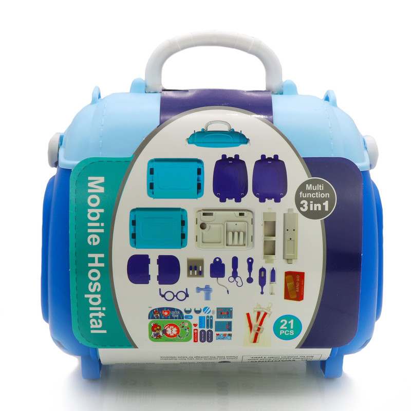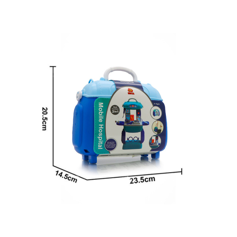 اگر بهدنبال یک اسباببازی سرگرمکننده، آموزشی و خلاقانه برای کودک خود هستید، ست پزشکی کودک مدل Mobile Hospital انتخابی هوشمندانه است. این مجموعه ۳ کاره، به شکل یک چمدان طراحی شده که بهراحتی باز شده و تبدیل به میز کار پزشکی میشود. طراحی خلاقانه، رنگبندی جذاب و ابزارهای متنوع پزشکی، کودک شما را وارد دنیای هیجانانگیز نقشآفرینی پزشک و بیمار میکند.