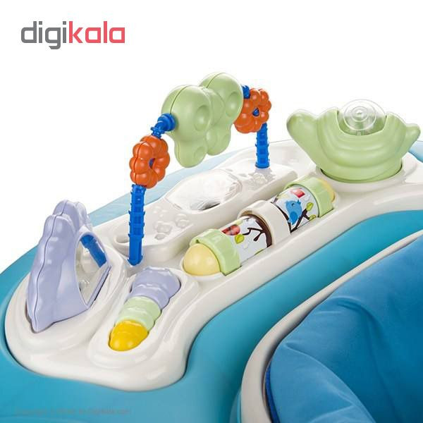 روروئک مناسب برای کودکان 6 ماه به بالاست. ظرفیت وزنی آن 12 کیلوگرم است و برای دختران و پسران کاربرد دارد. این روروئک بهعنوان واکر و جامپر هم قابلاستفاده بوده و ارتفاع آن در سه حالت تنظیم میشود. روروئک با قابلیت چرخش 360 درجه چرخهای یک سمت و استپر (ترمز چرخها) برای چرخهای سمت دیگر است . روی روروئک یک کنسول بازی وجود دارد که از قابلیت پخش موزیک های متنوع هم بهره میبرد. روی کنسول دو غلتک با تصاویر کودکانه دیده میشود. سه اسباببازی با قابلیت افزایش مهارتهای حرکتی و انگشتان کودک هم در سه طرف کنسول بازی قرار گرفتهاند. این روروئک در حالت بازشده دارای ابعاد 80 × 66 × 53 سانتیمتر است که در وضعیت تاشده ابعاد آن 80 × 66 × 25 سانتیمتر میرسد. روروئک پایههای ضربدری دارد که با تنظیم پایهها میتوان ارتفاع آن را در سه وضعیت تنظیم کرد. از ویژگیهای دیگر این روروئک میتوان به قراردادن پایههای آن در حالت رفت و برگشتی و تبدیل روروئک به یک جامپر اشاره کرد. همچنین در عقب نشیمن صندلی هم یک دسته وجود دارد که کودک با گرفتن آن میتواند از روروئک بهعنوان یک واکر استفاده کند. نشیمن روروئک هم از نوع شورتی بوده و دارای دو جای پا جهت قرارگیری صحیح کودک درون روروئک است.