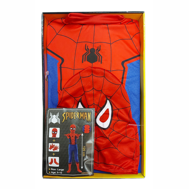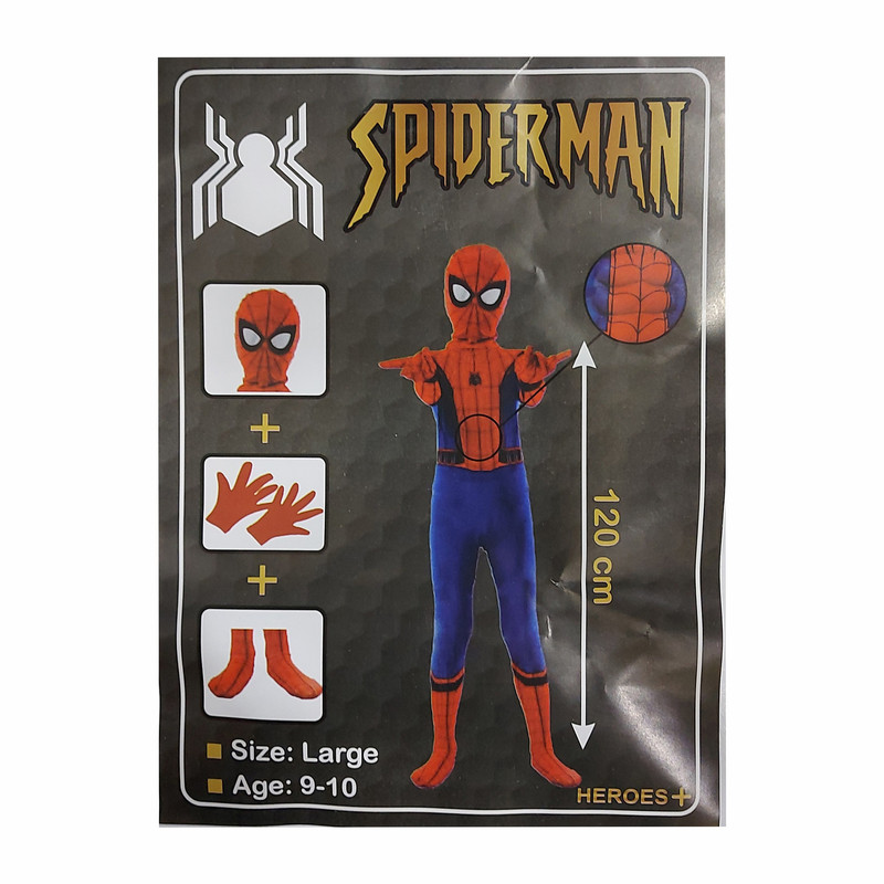 این ست، مجموعه لباس مرد عنکبوتی (اسپایدرمن) مناسب کودکان است. در این ست ایفای نقش یک لباس سرهمی اسپایدرمن، یک ماسک پارچه ای به صورت کلاه، یک جفت دستکش و یک جفت جوراب وجود دارد.