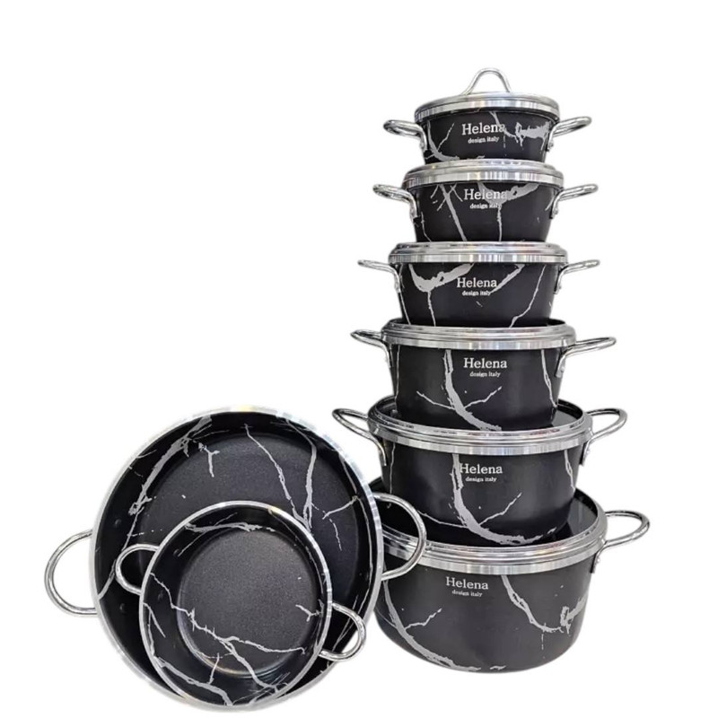 سرویس قابلمه و تابه تفلون ۱۴ پارچه هلنا مدل ماربل